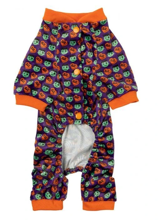 This is a Be My Ghoul Purple Halloween Dog Pyjamas by FuzzYard. This Halloween themed dog pyjamas are made of a soft cotton. It is non-toxic, non-allergenic and machine washable.