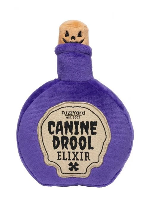 The FuzzYard Drool Elixir dog toy is a soft Halloween styled toy for your pet this season. It is a fun plush dog toy that features a squeaker to entice your pet to play. This soft Drool Elixir makes a wonderful play companion for your dog this Halloween.