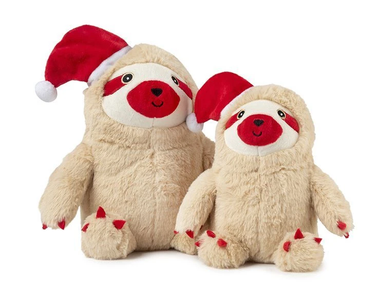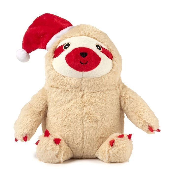 The Small FuzzYard Christmas Sloth is a soft plush dog toy with squeaker. It is approximately 20cm tall making it suitable for small to medium breed pets. It is made of 100% polyester fibre and it is machine washable.