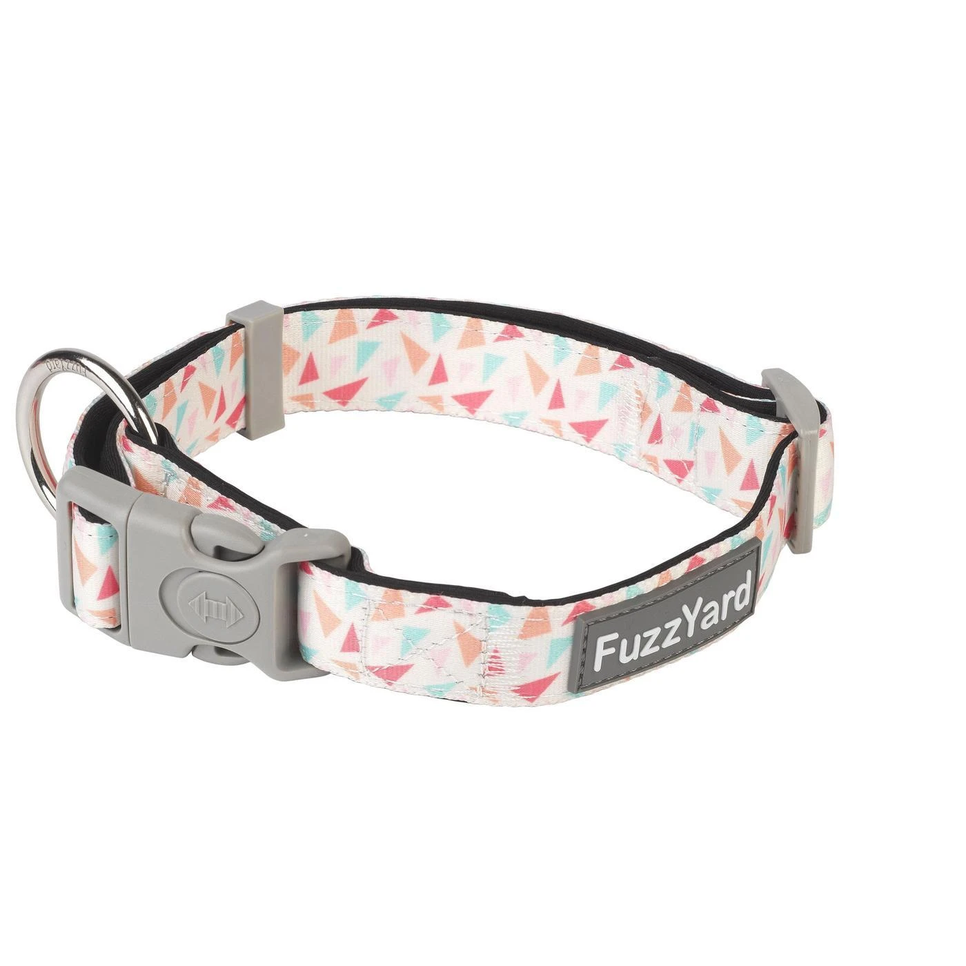 The Fuzzyard Fab Dog Collar (Medium) is a spongy neoprene collar that is lightweight and comfortable to wear, with plastic buckles and a stainless steel attachment ring for your dogs lead or ID collar. Better still, they coordinate with Fuzzyards leads and harnesses, so your dog will look perfect when they step out on the town.