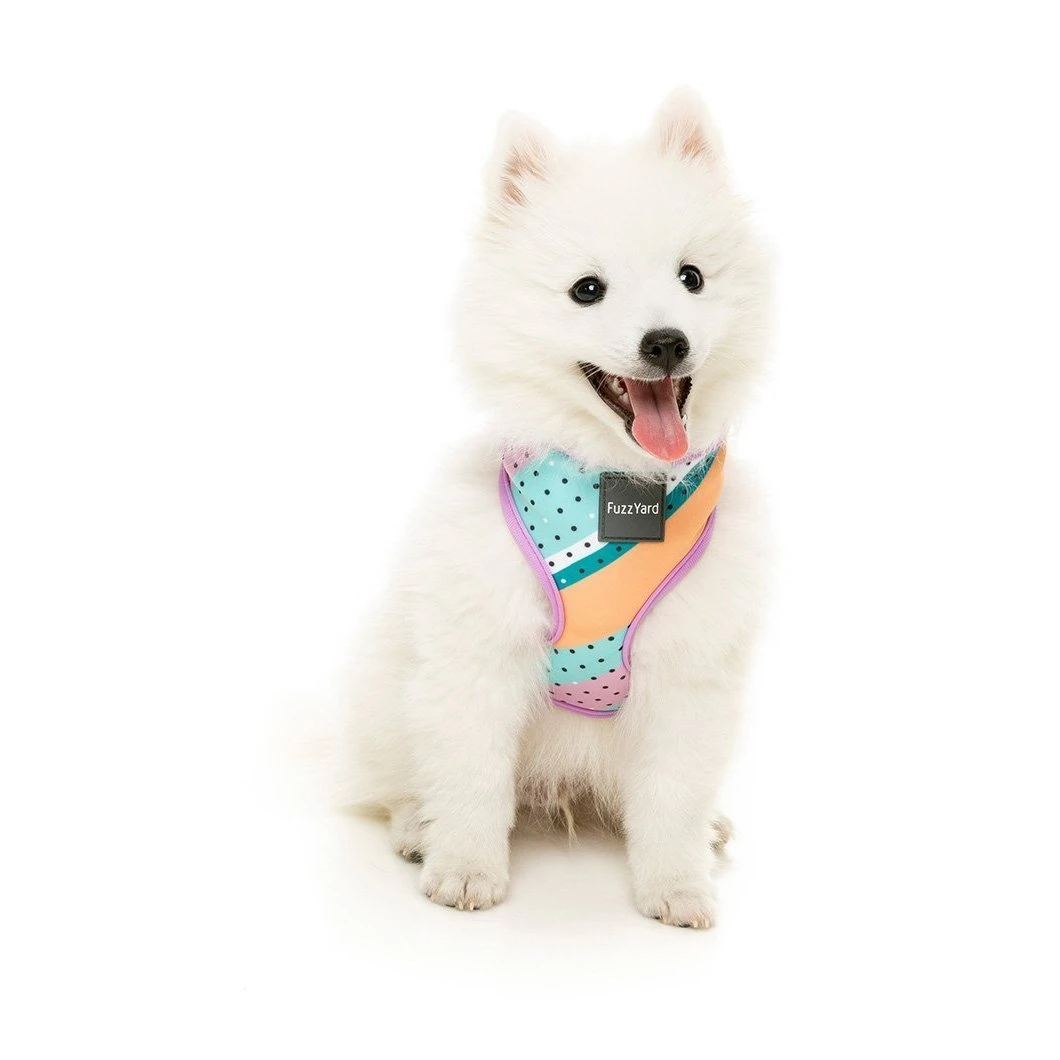 The Eighties live on at FuzzYard. Their latest Eighties-inspired pattern, Footloose is here, and we couldn’t be more excited! Everything about this poppin’ pattern of polka dots against pastel colours will have you and your doggo ready to dance your blues away.