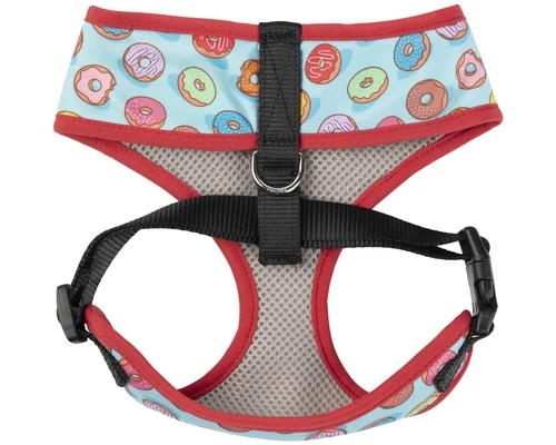 A lightweight, comfy, and super durable alternative to attaching the leash to your dog’s collar, this harness features an original pattern of colourful little doughnuts. The harness is made from 100% polyester and boasts a convenient slip on and buckle up design for easy walking. It also comes with a secure D-ring for easy land reliable eash attachment.