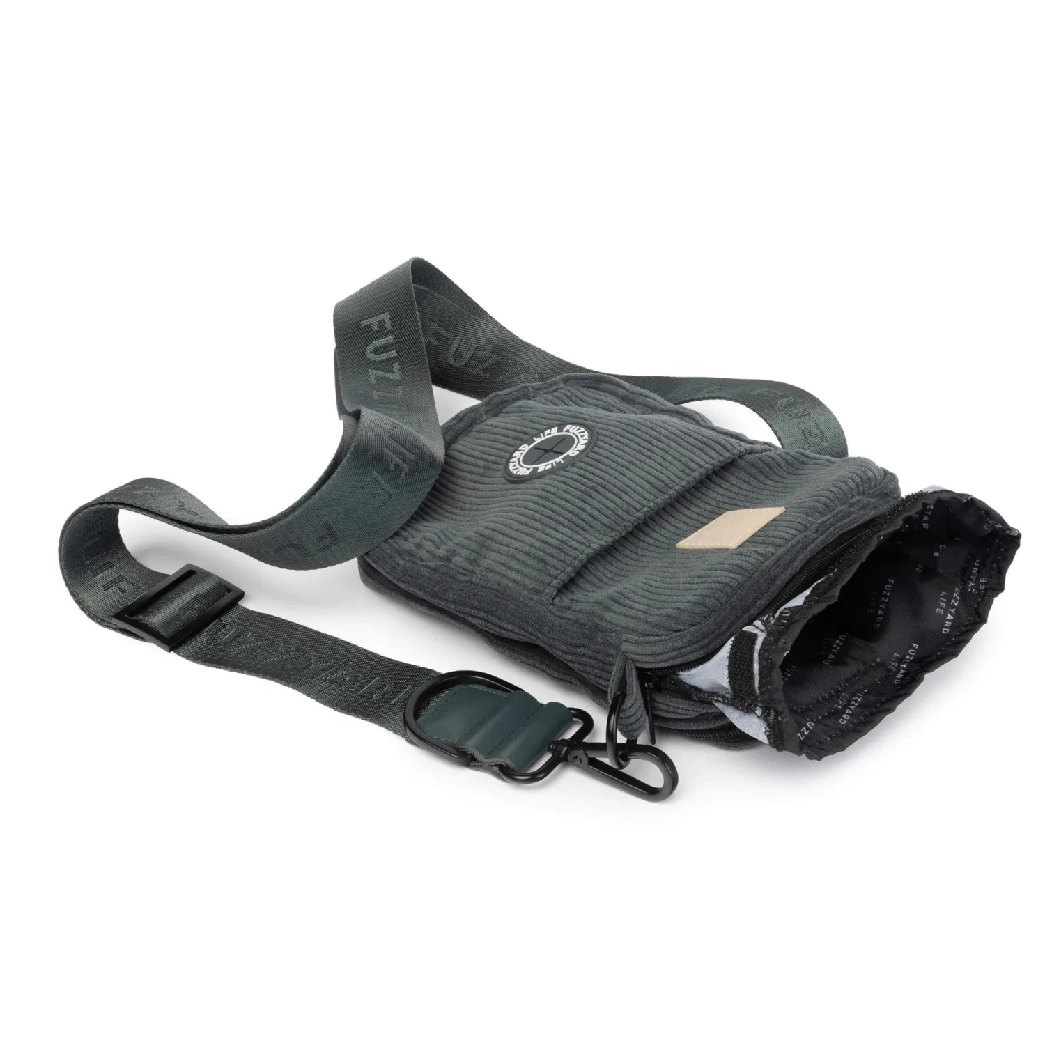 With ample space for all your items, a removable treat pouch, and an in-built poop bag dispenser, you’ll have everything you need when you’re out with your pet. Secure zips and velcro ensure all your items are safely contained, and the stylish, woven jacquard strap is adjustable to allow you to achieve the perfect fit. The silky printed lining finishes off the bag with the finesse and detail we put into all of our FuzzYard Life Products.