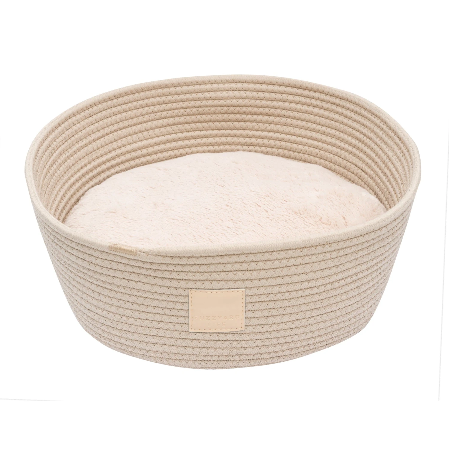 - Textured rope basket is made from cotton and polyester rope, with a removable pillow inside