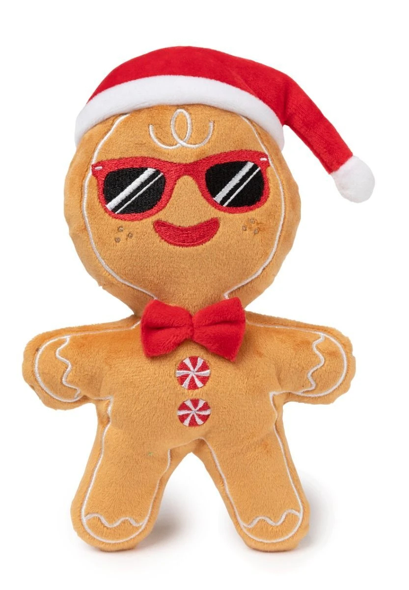 The Large FuzzYard Mr Gingerbread Christmas dog toy will make a great festive gift this holiday season. This plush Christmas toy comes with a squeaker inside for extra fun. It is made of 100% polyester fibre and is machine washable.