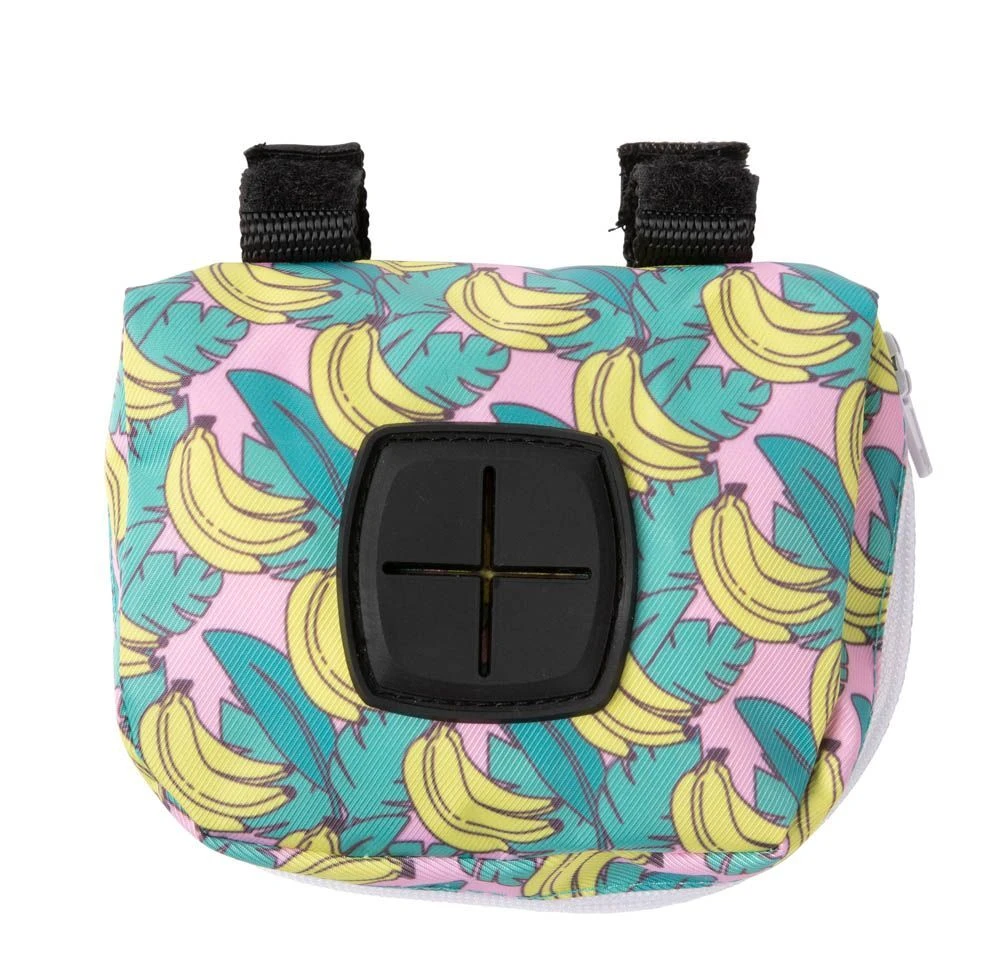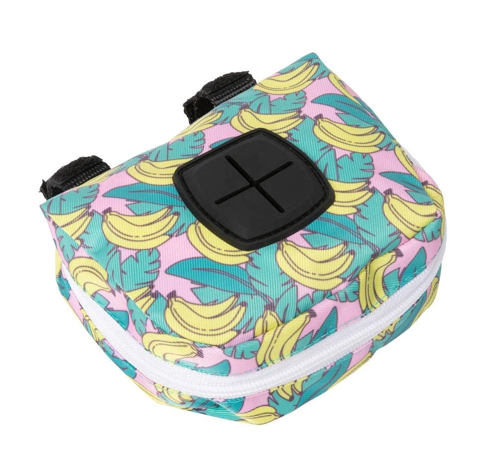 This is a FuzzYard Bananarama Dog Poop Bag Dispenser with 2 Rolls. It is made of polyester with a zipper, which makes it light weight. It measures 10cm x 9cm x 4.5cm. This poop bag dispenser will fit most standard dog poo bag rolls. Easily attached to your lead with the velcro loops. It is machine washable.