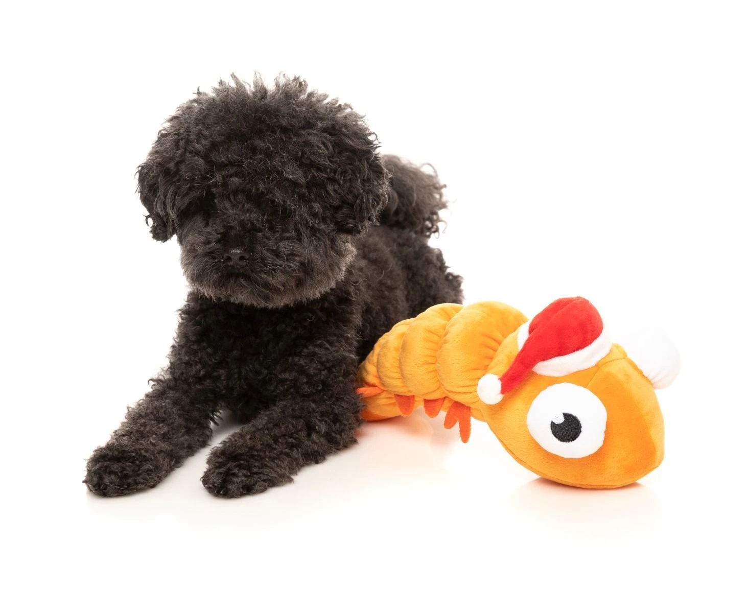 The FuzzYard Prawn Mendes Christmas dog toy will make a great festive gift this holiday season. This plush Christmas toy comes with a squeaker inside for extra fun. It is made of 100% polyester fibre and is machine washable.