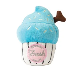 The large Fuzzyard Blue Cupcake is a delightful and fun plush dog toy that features a squeaker to entice your pet to play. The soft and cuddly cupcake makes a wonderful bedtime companion for your dog and an everyday squeaky toy for all-day play.